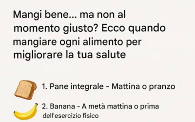 Mangi bene… ma non al momento giusto? Ecco quando mangiare ogni alimento per migliorare la tua salute Lascerò il resto nel primo commento. 👇