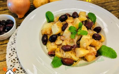 Presentazione patate apparecchiate: Le patate apparecchiate sono un contorno ricco di verdure come patate (ingredienti principale), olive, cipolle. Ingredienti molto…