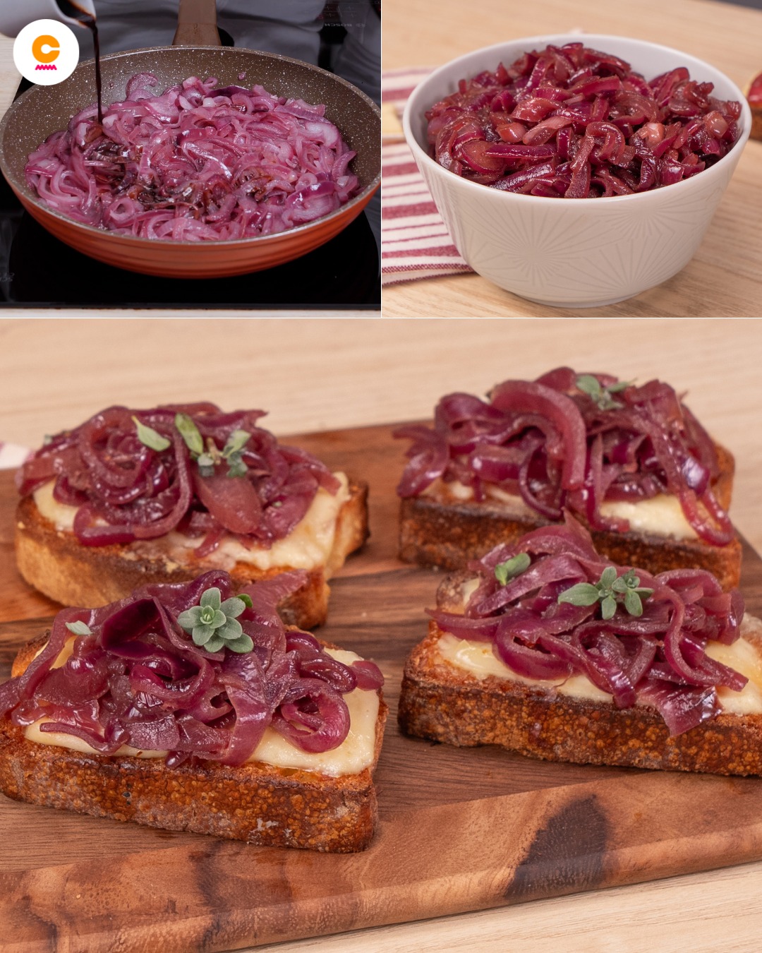 Le cipolle caramellate sono cipolle cotte lentamente in padella con un pizzico di zucchero e spesso con l'aggiunta di aceto o vino. La cottura prolungata a fuoco dolce permette agli zuccheri naturali delle cipolle di concentrarsi e caramellizzare, creando una consistenza morbida e un sapore agrodolce irresistibile.
