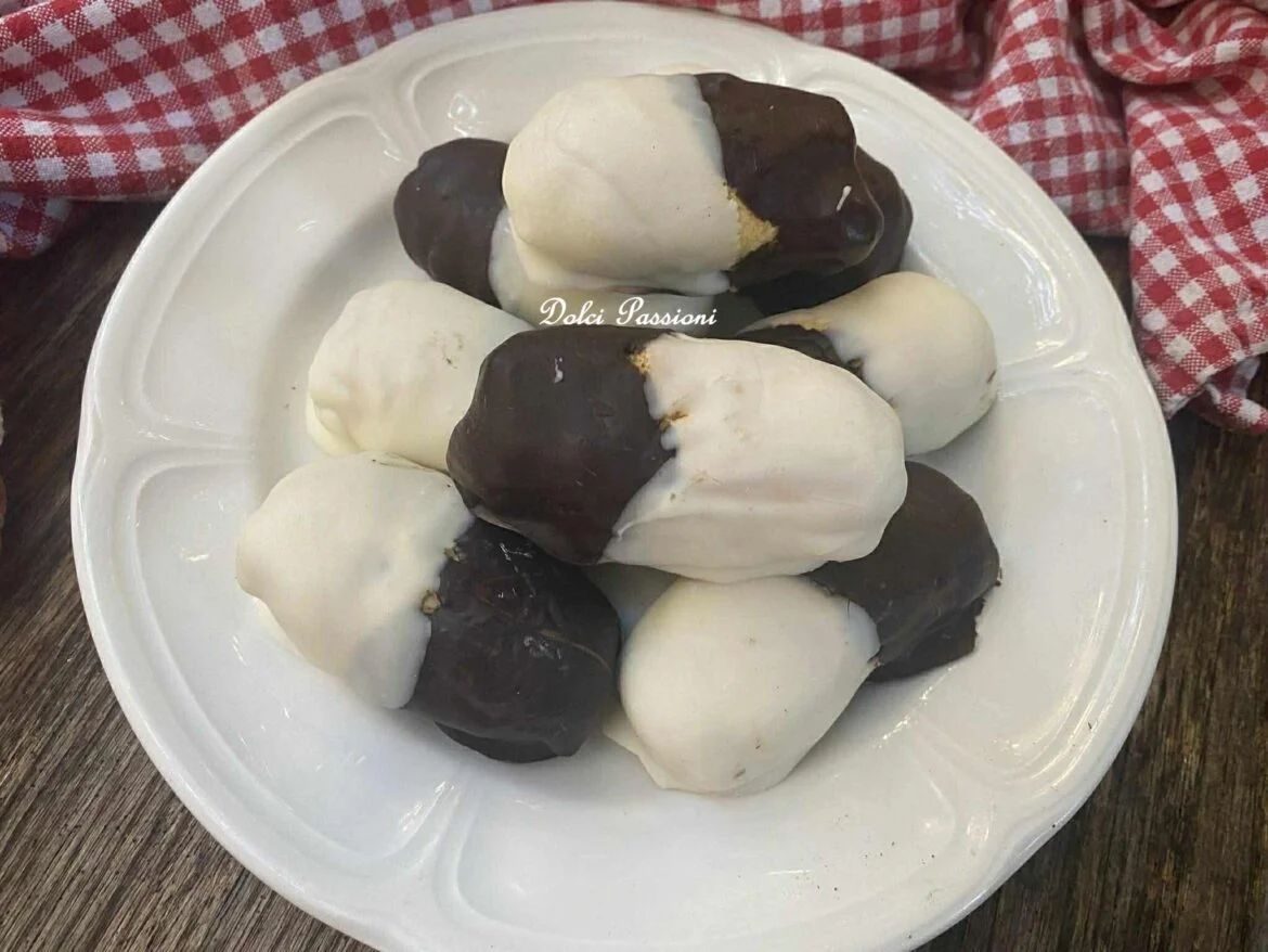 Appartengono alla tradizione dolciaria del Sud Italia, in particolare Napoletana, e si riconoscono subito per la loro forma irregolare e per la caratteristica copertura bicolore, metà glassa bianca e metà cioccolato fondente, simbolo di equilibrio e contrasto;