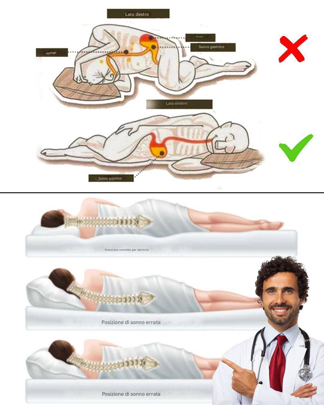 Dormire sul lato sinistro è la posizione più consigliata secondo diversi studi. Dormire sul lato destro può causare problemi digestivi e dormire sulla schiena non è raccomandato per le persone con apnea notturna o asma.