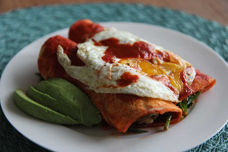 Ho aggiunto un po' di verde alle patate sotto forma di spinaci, ma anche cavolo nero o peperoni a cubetti andrebbero bene. Il formaggio Cotija è sempre uno dei miei preferiti, ma se è difficile da trovare dove vivi, aggiungi del Monterey Jack o del Cheddar grattugiato. In pratica, il mondo è la tua enchilada per la colazione e puoi metterci dentro quello che vuoi. Tranne le ostriche. Ma forse anche le ostriche vanno bene.