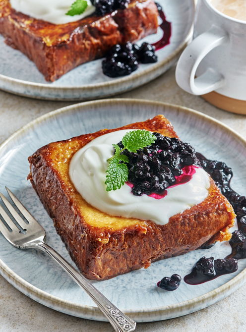 Questi french toast, preparati nel programma Isabelle and Ricardo's Kitchen, delizieranno gli amanti del cibo all'ora del brunch. Fette di pane brioche vengono immerse in un composto di uova prima di essere fritte in padella con burro e sciroppo d'acero fino a caramellarle. Servite il french toast con una composta di mirtilli al forno.