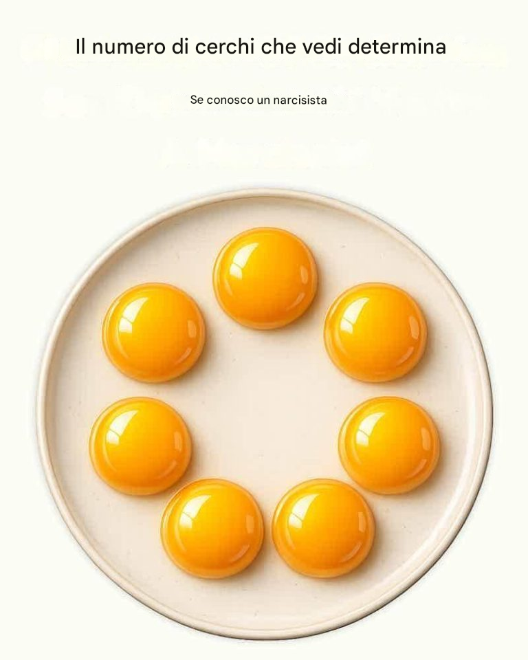 Na pierwszy rzut oka obraz wydaje się niszczący: un plato limpio, siete yemas de huevo brillantes colocadas en un anillo casi Perfecto e un titolare lamativo che sta che la quanto di cerchi che può determin se siete narcisisti.