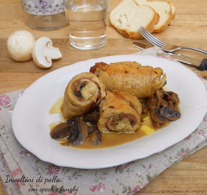 Gli involtini di pollo con speck, funghi e formaggio sono un gustosissimo secondo piatto facile da preparare e ideale per tutta la famiglia. La ricetta che vi propongo è molto semplice, se volete avvantaggiarvi potete preparare i funghi trifolati la sera prima in modo da poter mettere a tavola i commensali in breve tempo.