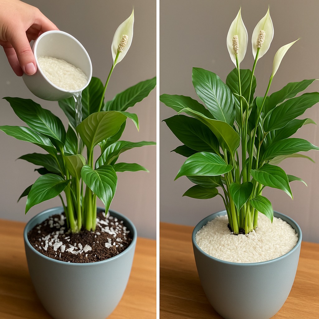 Il riso è un alimento molto diffuso, ma contiene anche una grande quantità di minerali, come potassio e fosforo. Questi minerali stimolano la fioritura, migliorano la lucentezza delle foglie e rinforzano le radici.