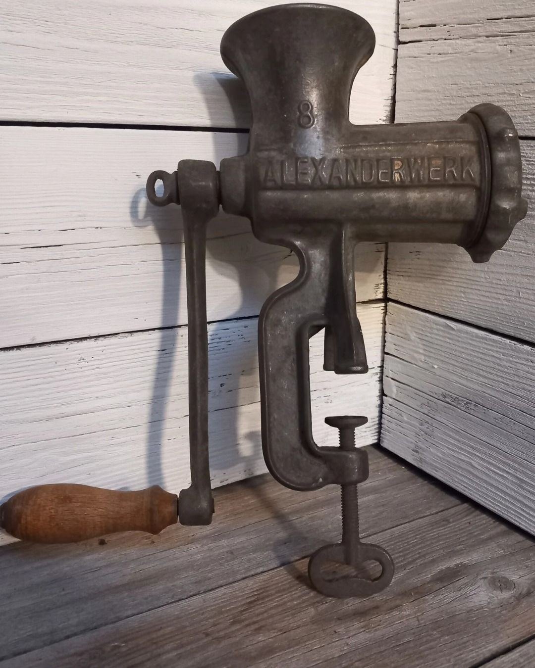 Questo tritacarne funziona con una coclea: si inserisce la carne da un lato, si gira la manovella e la carne esce finemente tritata attraverso una griglia metallica. Semplice, pratico… e completamente manuale.