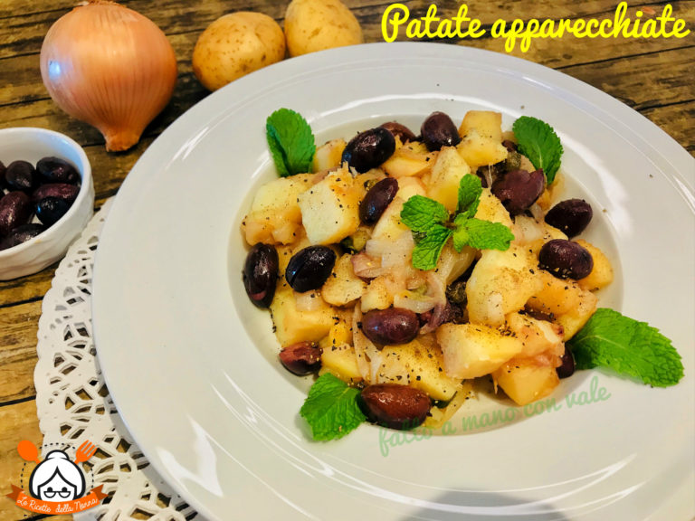 Le patate apparecchiate sono un contorno ricco di verdure come patate (ingredienti principale), olive, cipolle. Ingredienti molto semplici, ma insieme renderanno il vostro piatto davvero perfetto. Potete servirle fredde oppure calde. Ottime per deliziare il palato.