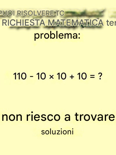 Risolviamolo passo dopo passo: decifriamo il puzzle. L'equazione da risolvere è: 110 − 10 × 10 + 10. Applichiamo il metodo PEMDAS/BODMAS passo dopo passo.