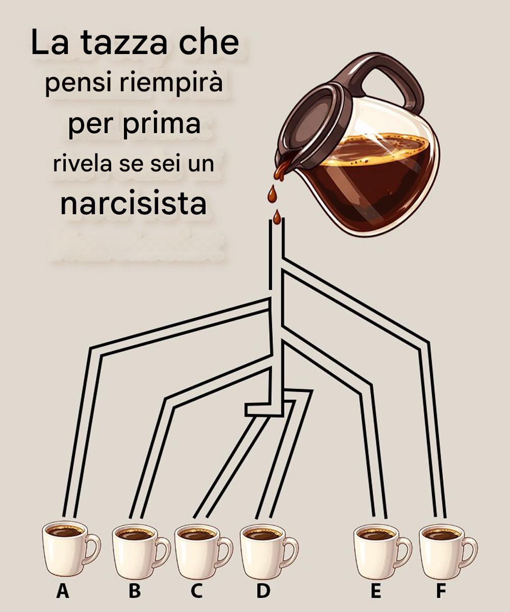 A prima vista, questa immagine sembra un semplice rompicapo logico. Il caffè scorre attraverso una rete di tubi verso sei tazze etichettate dalla A alla F. La sfida sembra facile: quale tazza si riempirà per prima?