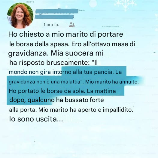 Stanchezza crescente, un corpo che cambia, stress mentale estremo… All'ottavo mese di gravidanza, ogni attività quotidiana può diventare una piccola sfida. Ma a volte non è il peso della spesa a essere più difficile. È la sensazione di essere invisibili, inascoltate, assenti. E se un semplice, insignificante momento rivelasse molto più di quanto immaginiamo? Questa storia inizia come tante altre e prende una piega inaspettata…