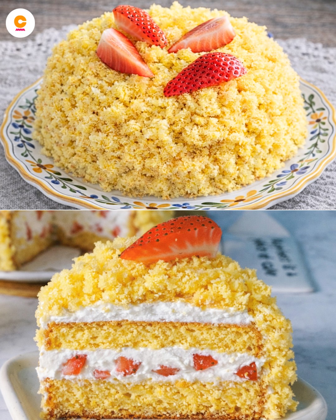Ecco tutti i passaggi per realizzare una torta mimosa alle fragole perfetta. Le dosi sono pensate per uno stampo da 22-24 cm di diametro.