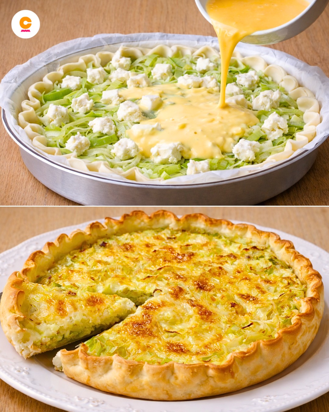 La torta salata porri e brie è una preparazione semplice e raffinata, ideale per iniziare un pasto con gusto o per arricchire un buffet. Unisce la dolcezza dei porri, resi morbidi dalla cottura, alla cremosità del brie, formaggio francese dal sapore delicato e leggermente burroso. Il risultato è un piatto versatile, che conquista al primo assaggio e si presta a diverse occasioni: dall’antipasto delle feste alla cena informale tra amici.