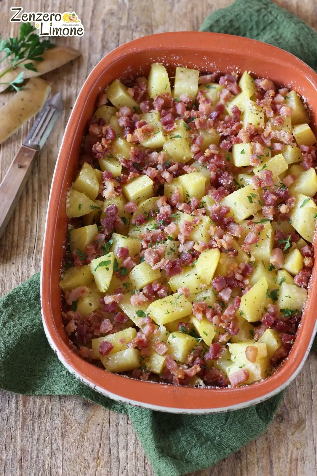 Ci sono piatti che nascono per curiosità, come queste patate alla carbonara. Ho letto la ricetta nell’Enciclopedia della cucina italiana e subito mi è venuta voglia di provarle visto che adoro sia le patate che la carbonara. L’idea è semplice: prendere l’anima di un grande classico della cucina romana e trasferirla in un contorno sostanzioso e irresistibile. Le patate, prima lessate e poi passate in forno, diventano la base su cui si scioglie il pecorino, mentre il profumo dell’aglio e la croccantezza della pancetta (in questo piatto non si usa il guanciale) richiamano subito la golosità della carbonara. Un tocco finale di prezzemolo fresco e il piatto è pronto. Facile da preparare e ricco di sapore. Insomma un comfort food nato dall’incontro tra tradizione e fantasia.